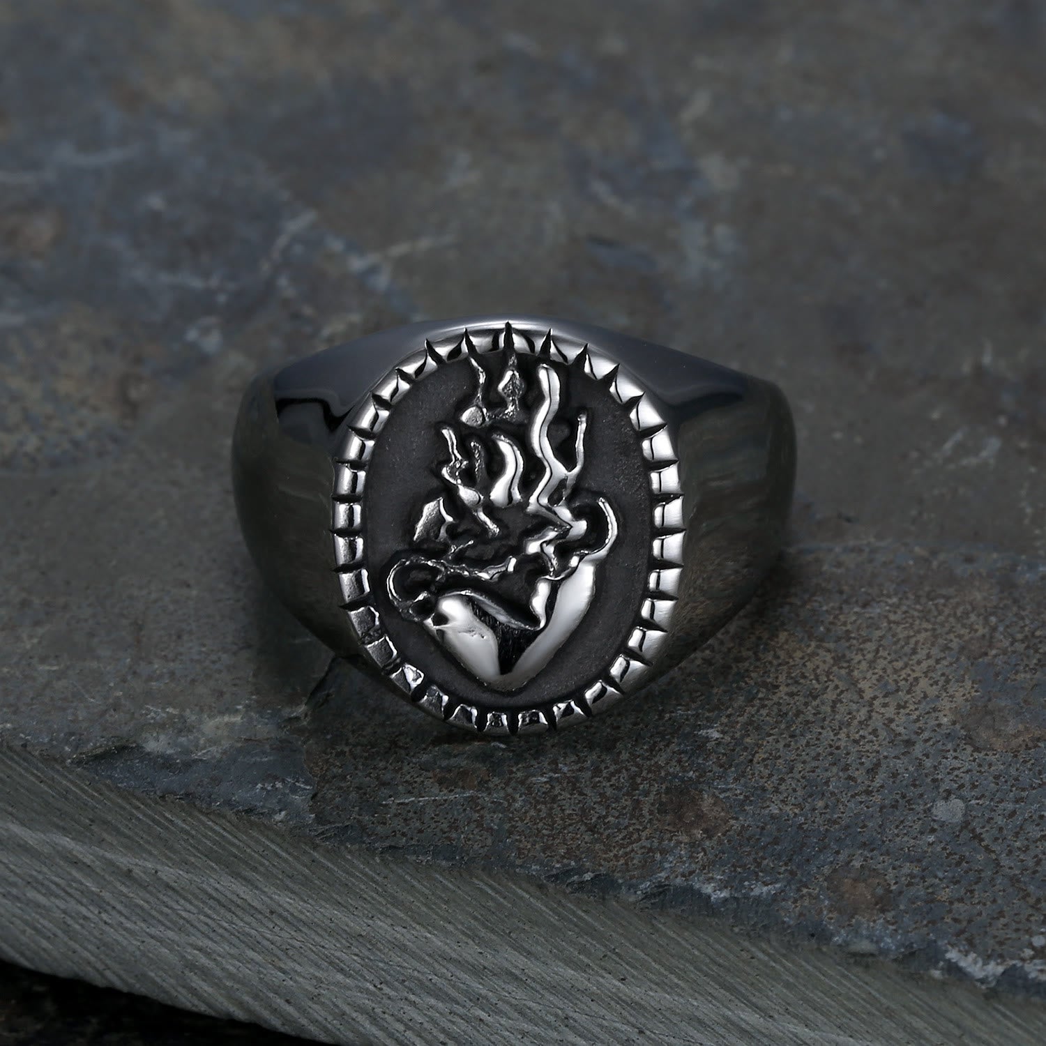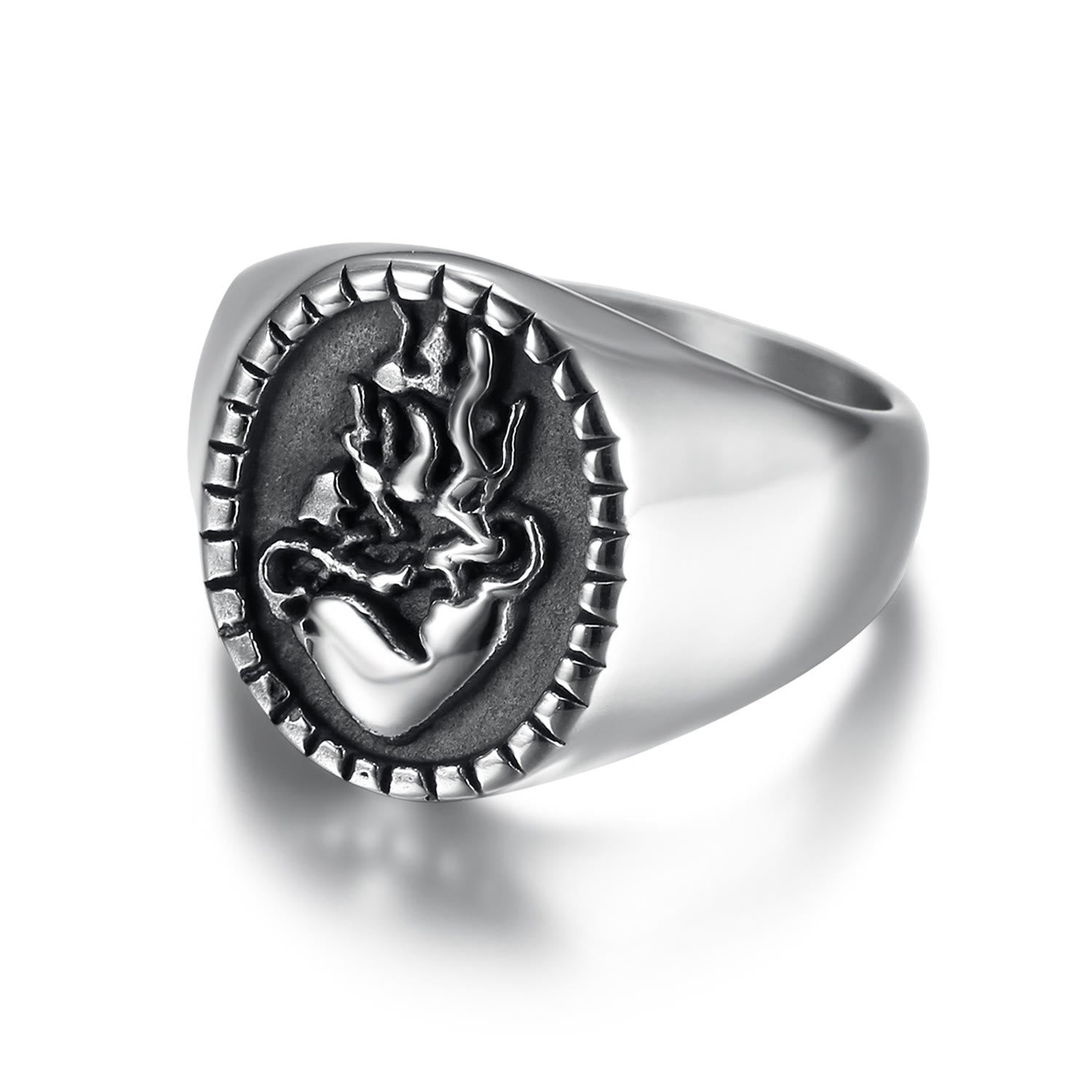 Un design fidèle : Les motifs de l'anneau, entourés de motifs classiques, symbolisent l'espoir, la force et l'amour éternel – le Cœur de Jésus.