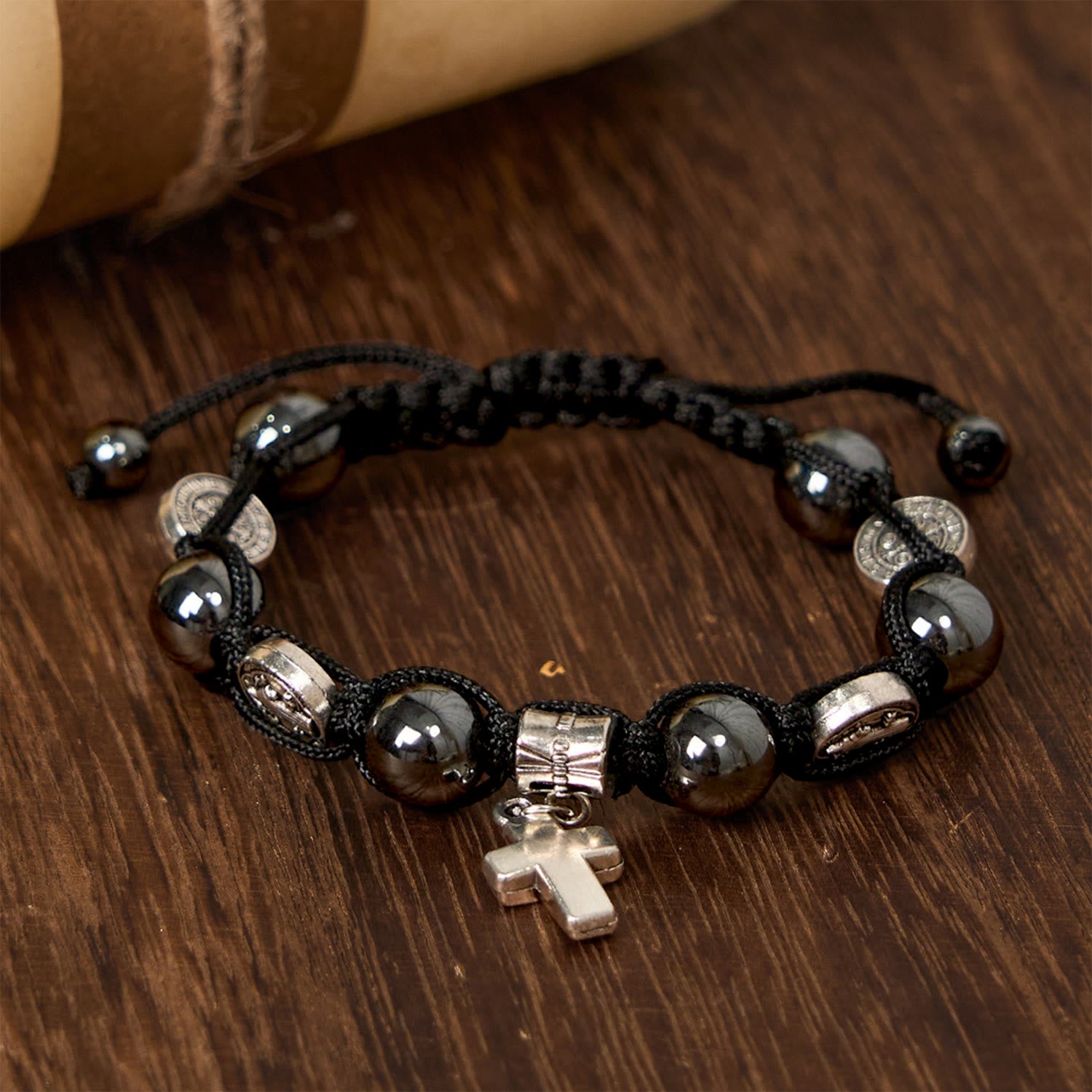 Bracelet de perles d'hématite avec croix et saint Benoît : un rappel solennel des racines spirituelles