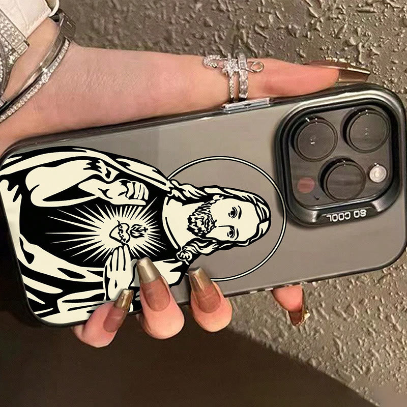 Ornée du Sacré-Cœur de Jésus, cette coque de téléphone apporte une touche intemporelle de spiritualité et de grâce. - Conception sacrée, construction durable