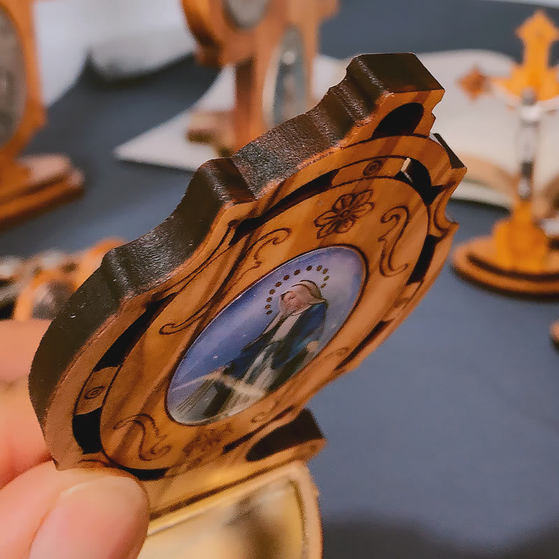 Christianartworkshop Béniten en bois d'olivier, médaille miraculeuse, Assomption de Notre-Dame