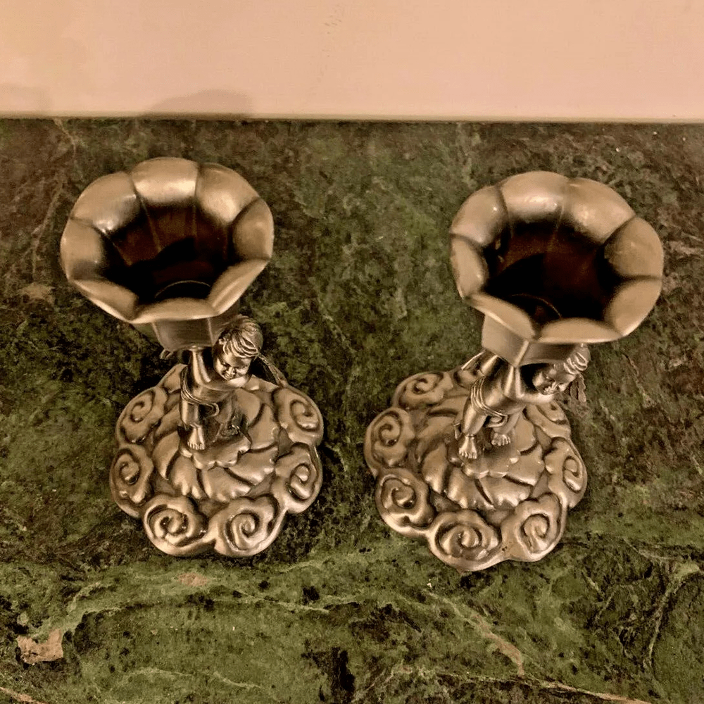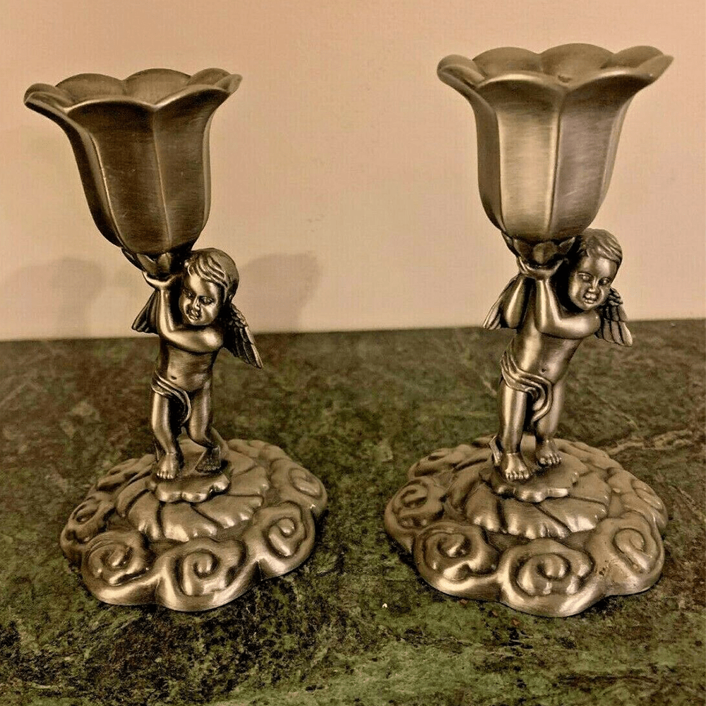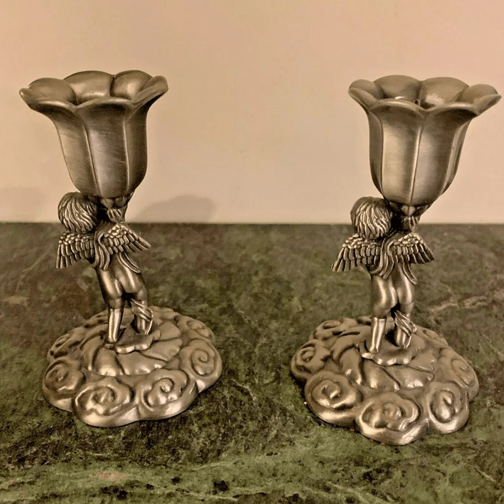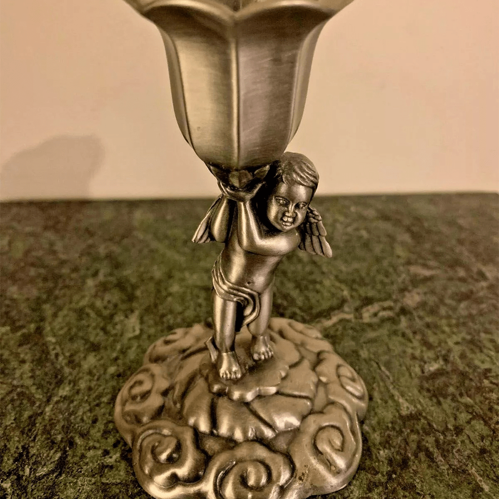 • Bougeoir élégant en étain à l'allure angélique : une touche céleste pour votre intérieur