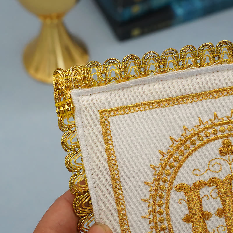 Sublimez vos cérémonies religieuses avec le Voile et le Purificatoire du Calice Sacré. Spécialement conçu pour les chrétiens fervents, cet ensemble raffiné allie élégance et spiritualité, rehaussant la solennité de votre prière. - Caractéristiques et détails du produit :