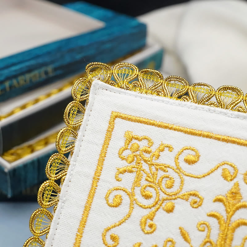Sublimez vos cérémonies religieuses avec le Voile et le Purificatoire du Calice Sacré. Spécialement conçu pour les chrétiens fervents, cet ensemble raffiné allie élégance et spiritualité, rehaussant la solennité de votre prière. - Caractéristiques et détails du produit :