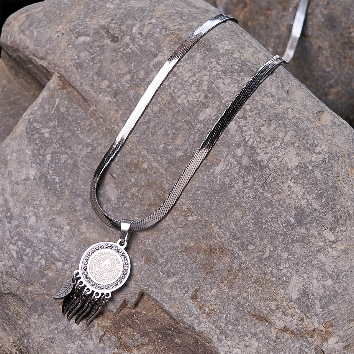 La bordure en zircon et les plumes pendantes ajoutent une délicate beauté, tandis que l'icône du saint revêt une signification spirituelle profonde. La qualité de fabrication, durable, conserve son éclat jour après jour, reflétant une foi inébranlable. - Porté comme un rappel de la foi, vécu comme une grâce quotidienne