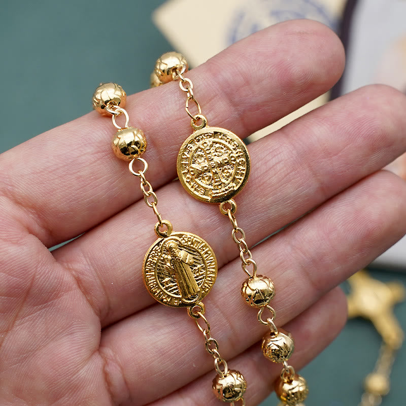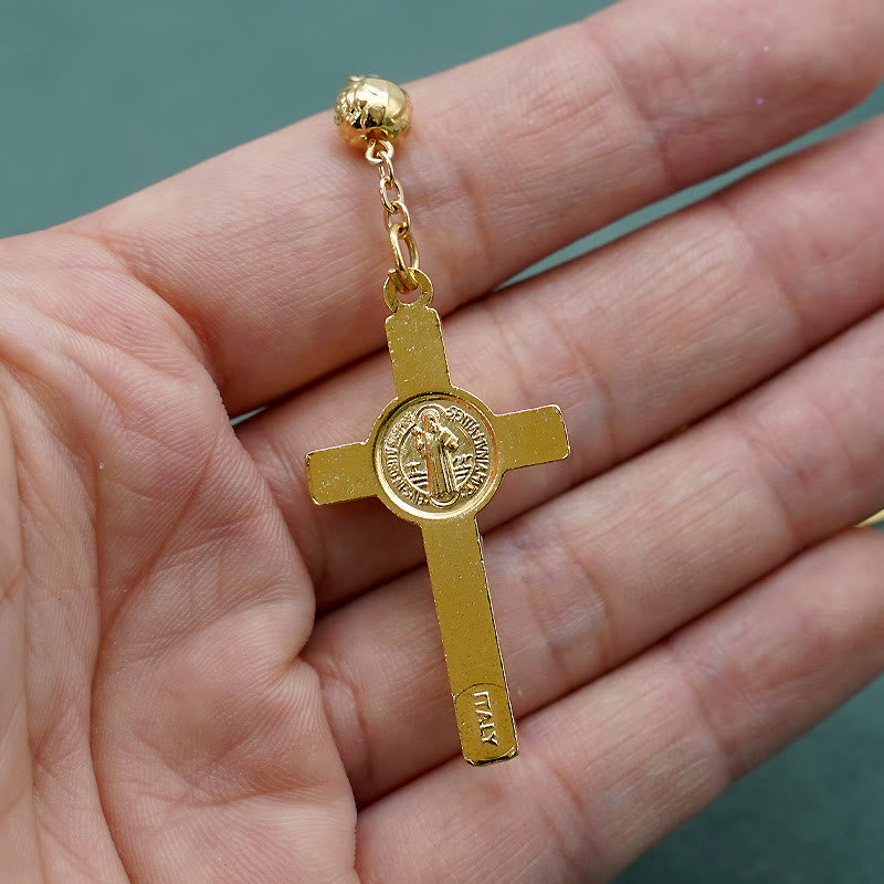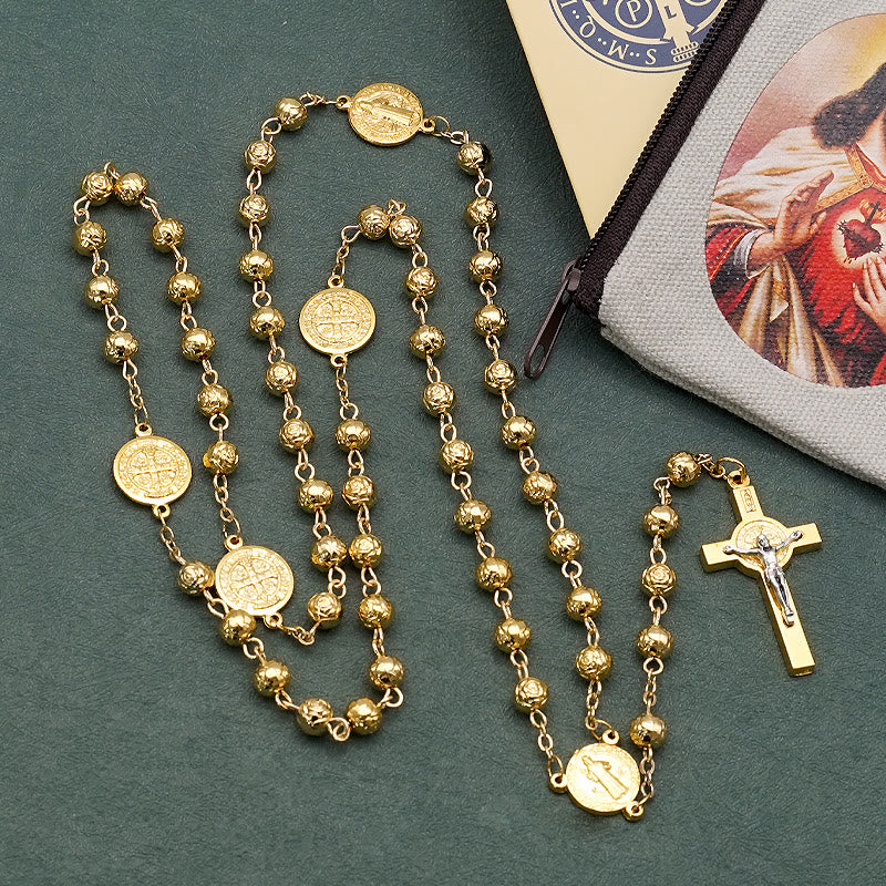 Des symboles qui parlent : La courbe d'une croix, les lignes d'une médaille bénédictine, la boucle d'un chapelet – ce ne sont pas de simples ornements. Ce sont des symboles : la croix murmure « salut », le chapelet symbolise « les étapes de la prière », les mots « foi, espérance et charité » font écho à 1 Corinthiens 13. Ils sont discrets, et pourtant plus éloquents que les mots – des rappels pour vous et de doux témoignages pour le monde.