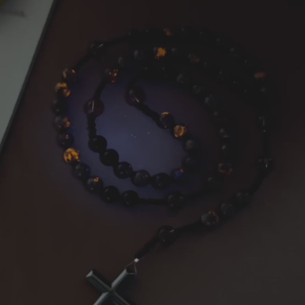 Christianartworkshop Chapelet en pierre à flamme lumineuse aux couleurs changeantes avec croix