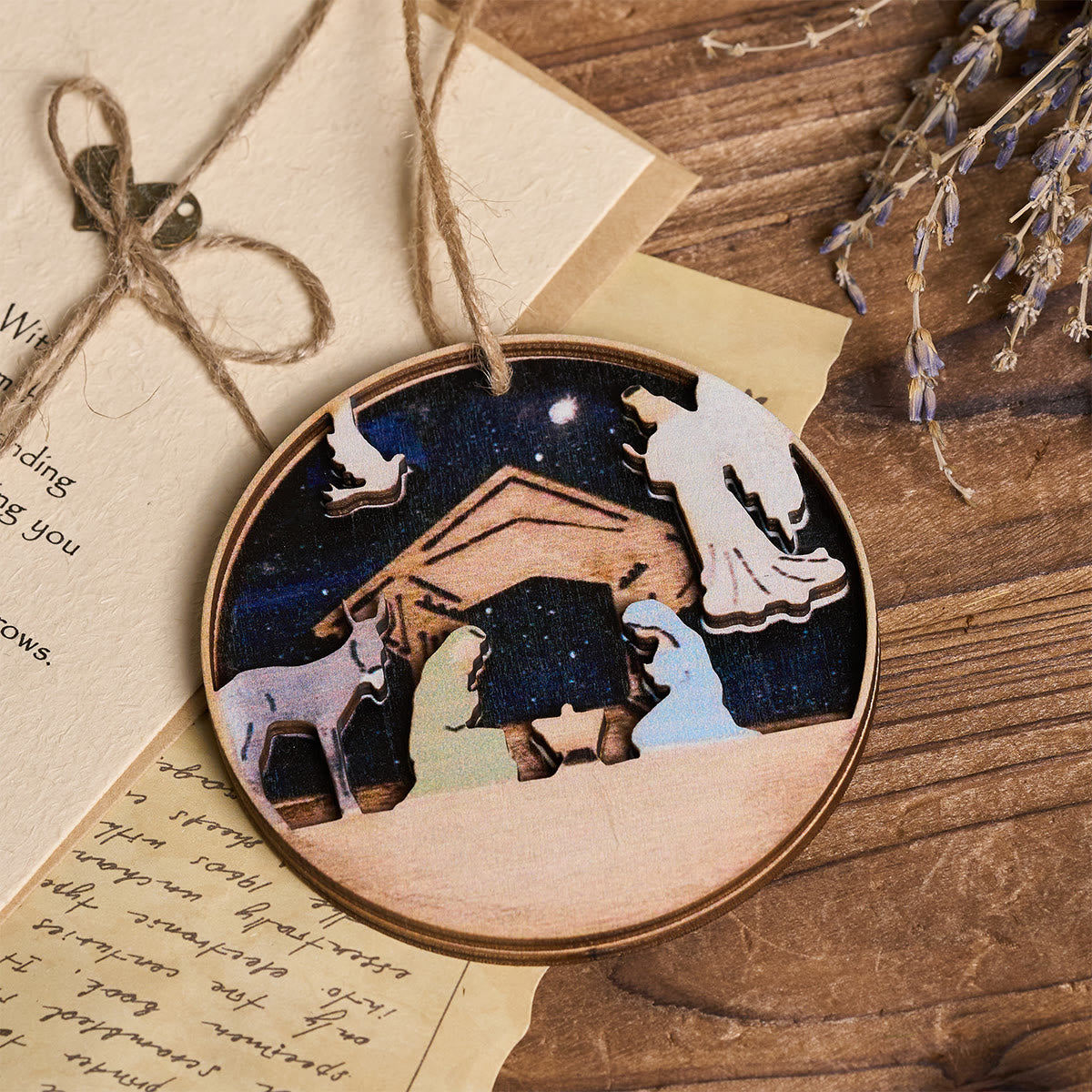- Crèche en bois 3D avec anges et animaux décoratifs à suspendre