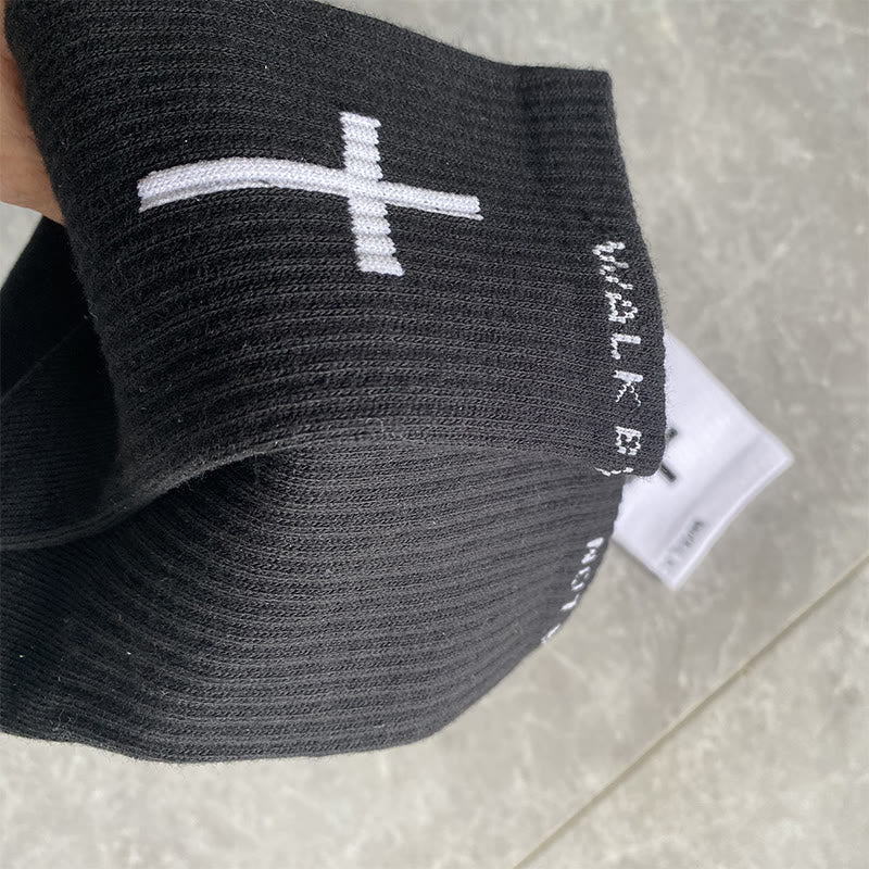 Ces chaussettes en coton « Foi chrétienne » expriment la foi avec subtilité et force. La croix, symbole emblématique du christianisme, orne chaque chaussette et représente le sacrifice et l'amour de Jésus-Christ. La phrase « Marchez par la foi, non par la vue », élégamment inscrite sur le dessus des chaussettes, est un principe biblique profond. Elle encourage les croyants à faire confiance à la volonté et au plan de Dieu, plutôt que de se fier uniquement aux apparences, leur rappelant chaque jour une vérité spirituelle. - Le confort rencontre l'inspiration divine