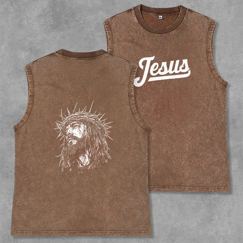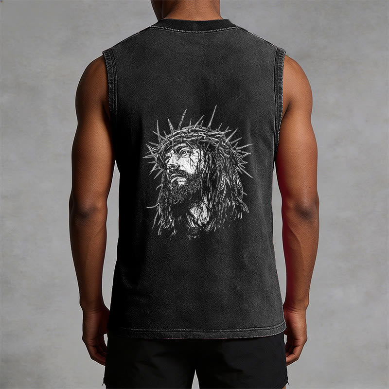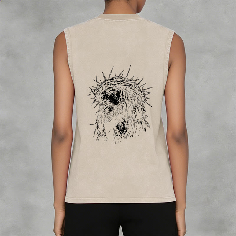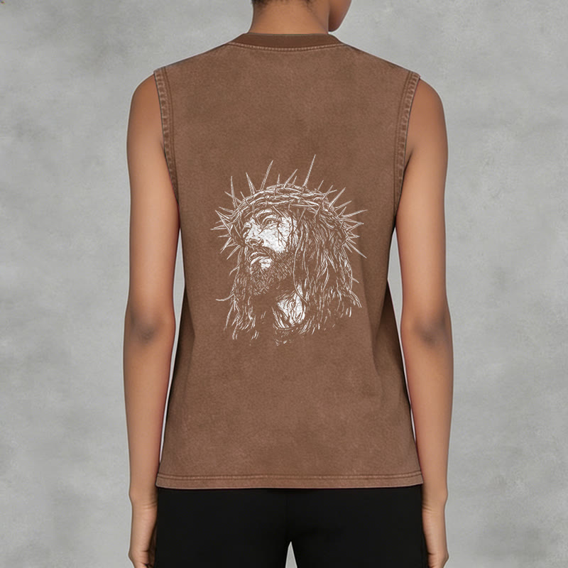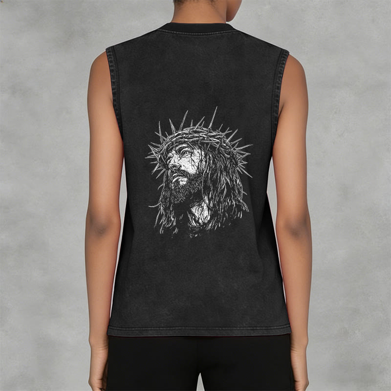 Découvrez le débardeur unisexe « Jésus : Couronne d'épines » (motif recto-verso) , une pièce à la fois empreinte de recueillement et d'émotion, qui témoigne de votre foi et de votre souvenir du sacrifice de Jésus. Confectionné dans un tissu lavé haut de gamme, respirant et résistant, ce débardeur sans manches arbore l'inscription « Jésus » en lettres capitales de style vintage sur la poitrine, ainsi qu'un dessin détaillé de Jésus couronné d'épines au dos. Conçu pour un confort et une liberté de mouvement optimaux, il est idéal au quotidien, pour les moments de recueillement ou comme un puissant rappel de son amour rédempteur.