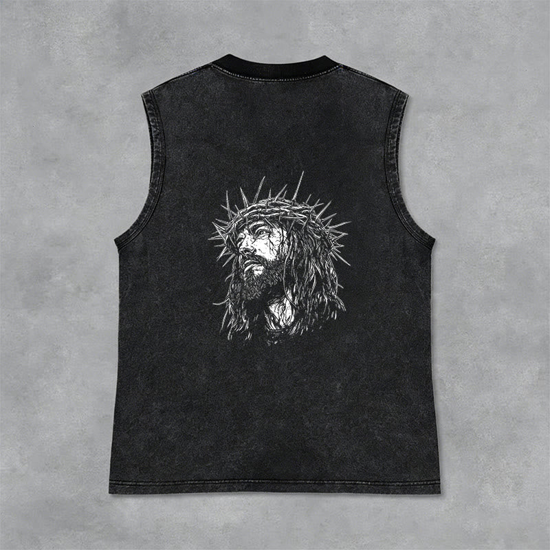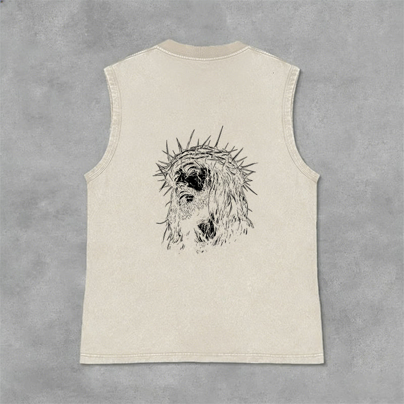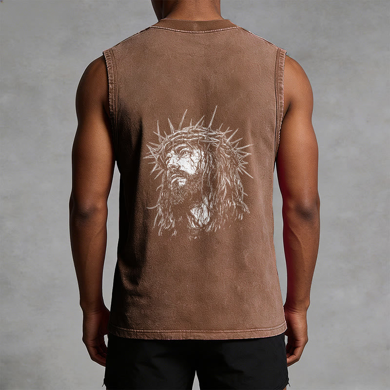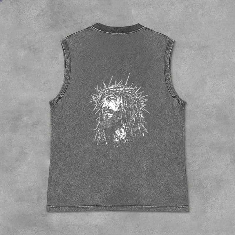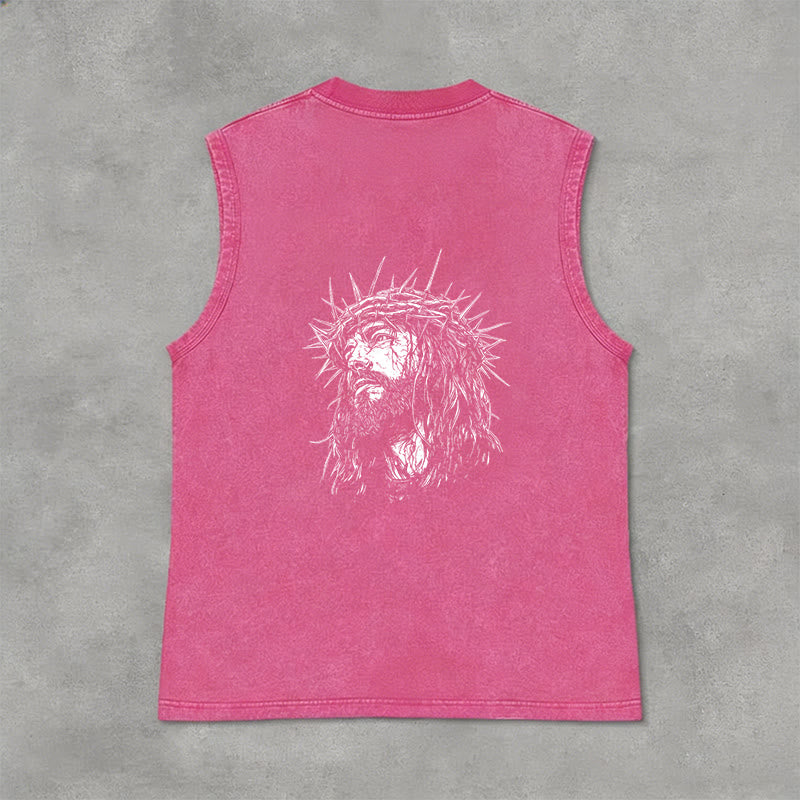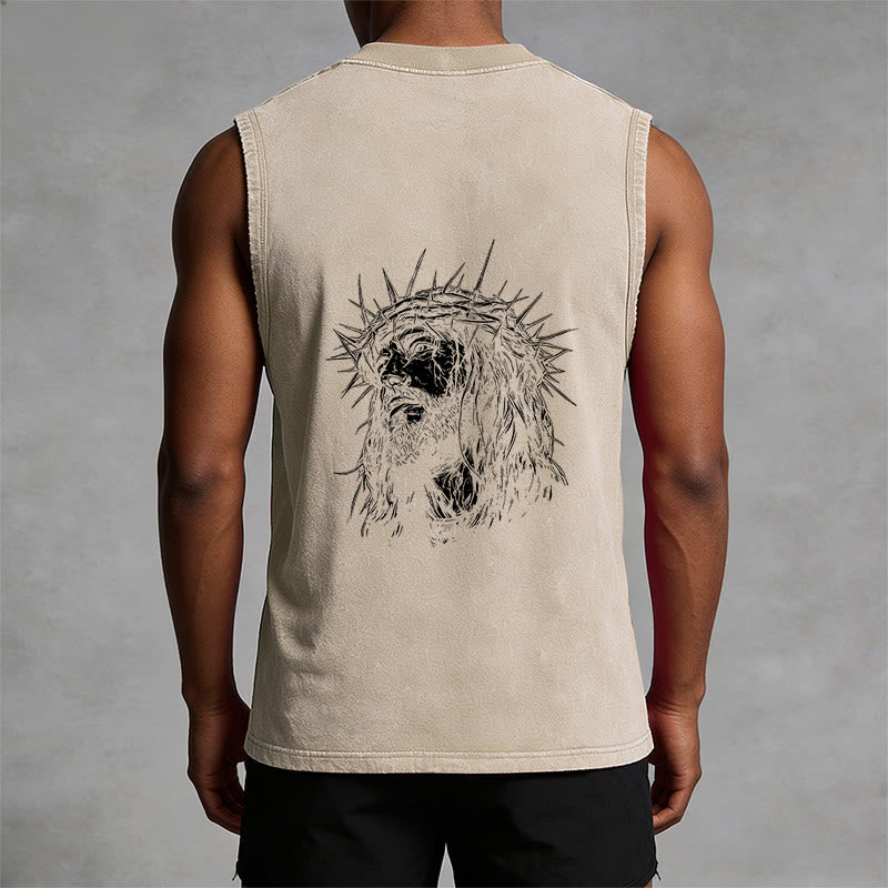 Découvrez le débardeur unisexe « Jésus : Couronne d'épines » (motif recto-verso) , une pièce à la fois empreinte de recueillement et d'émotion, qui témoigne de votre foi et de votre souvenir du sacrifice de Jésus. Confectionné dans un tissu lavé haut de gamme, respirant et résistant, ce débardeur sans manches arbore l'inscription « Jésus » en lettres capitales de style vintage sur la poitrine, ainsi qu'un dessin détaillé de Jésus couronné d'épines au dos. Conçu pour un confort et une liberté de mouvement optimaux, il est idéal au quotidien, pour les moments de recueillement ou comme un puissant rappel de son amour rédempteur.